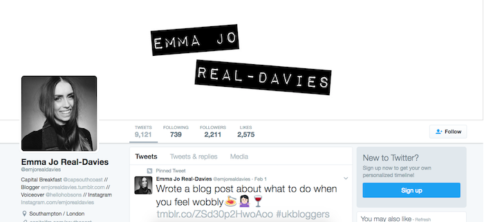Emma Jo Twitter Banner Posted on July 31, 2017April 28, 2022 by Emily | All Design Designing a twitter banner for a radio presenter, podcaster, voiceover artist and blogger. She loves all things minimal, clean and modern, Emma is always ahead with new trends which is crucial for her blogs.